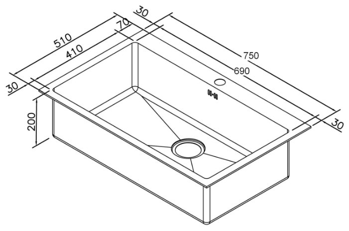врезная кухонная мойка прямоугольная из нержавеющей стали ШхГ 75х51 см