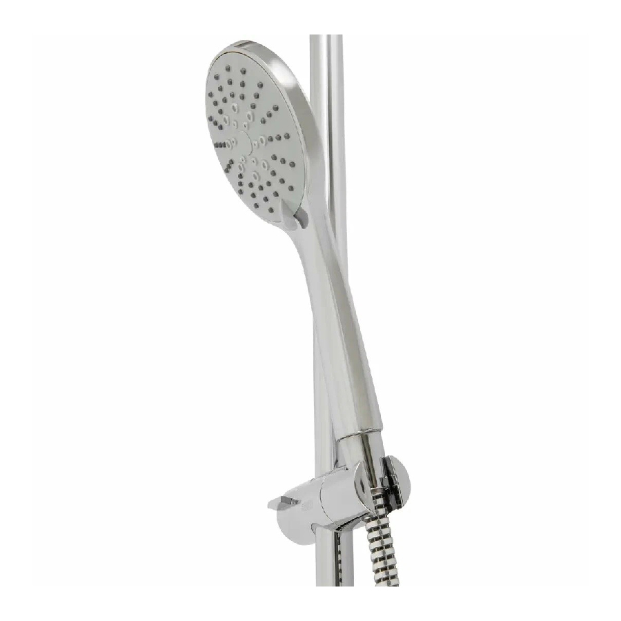 Душевая система Esko ST2100 с верхним душем и смесителем. Душевая система изготовлена из нержавеющей стали и пластика. Длина шланга - 150 см.