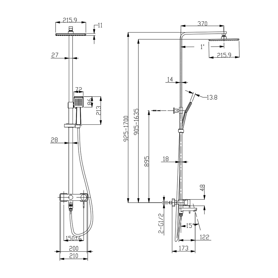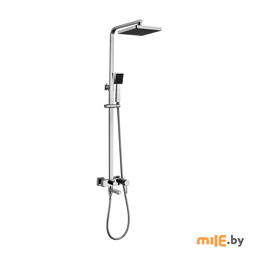Смеситель для ванны и душа с регулируемой высотой штанги, поворотным изливом и верхней душевой лейкой "Тропический дождь".