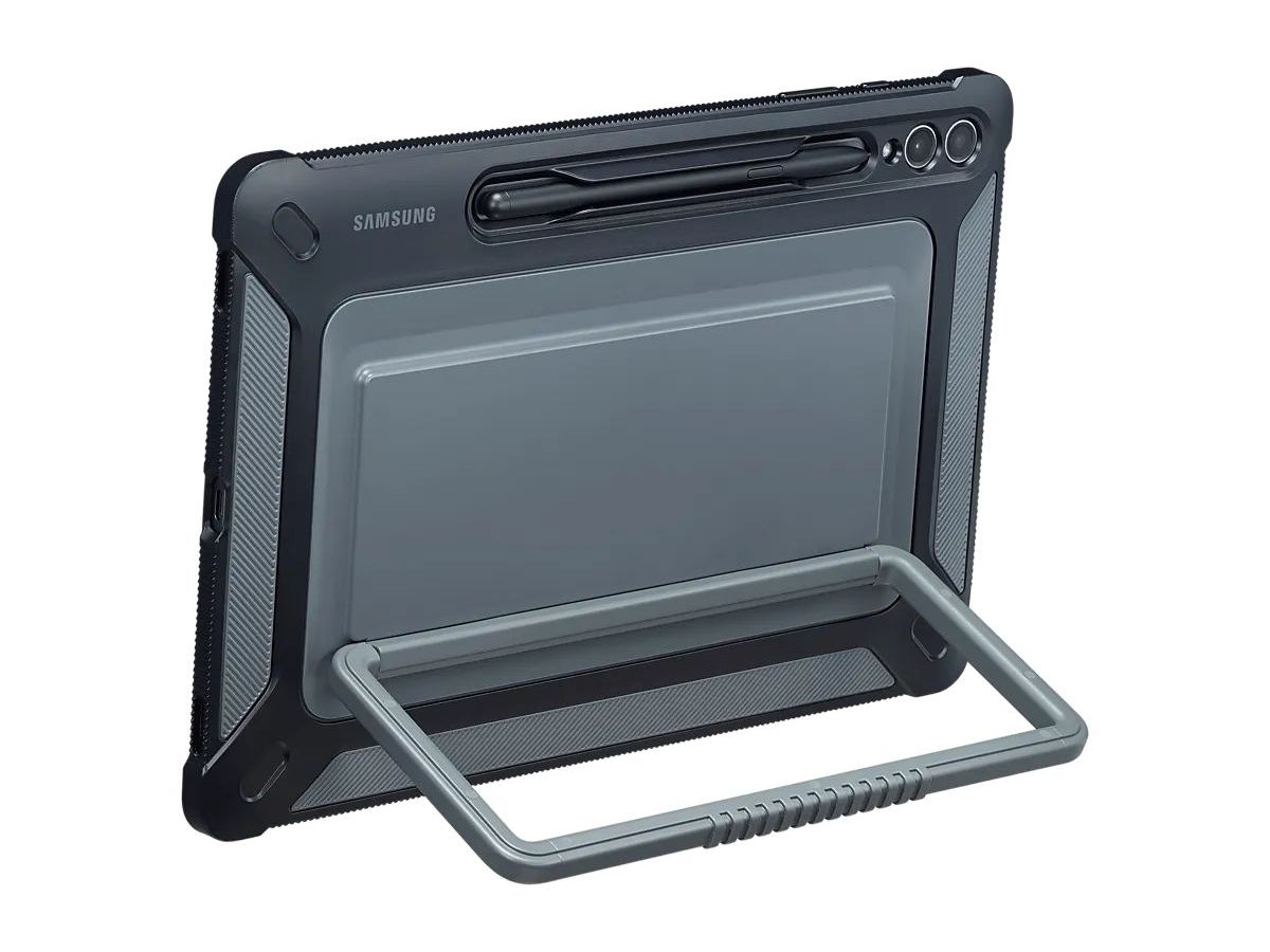 Используйте планшет на открытом воздухе без лишних забот. Прочный чехол-накладка Outdoor Cover изготовлен в соответствии с военным стандартом MIL-STD 810G-516.7 и обеспечивает сохранность корпуса планшета при ударах и падениях с небольшой высоты. Встроенная сзади откидная подставка гарантирует удобную работу с устройством в альбомном режиме. Она также служит ручкой для переноски, позволяя надёжно удерживать планшет в руке. Встроенный держатель электронного пера S Pen — удобное дополнение, благодаря которому перо будет находиться всегда под рукой.