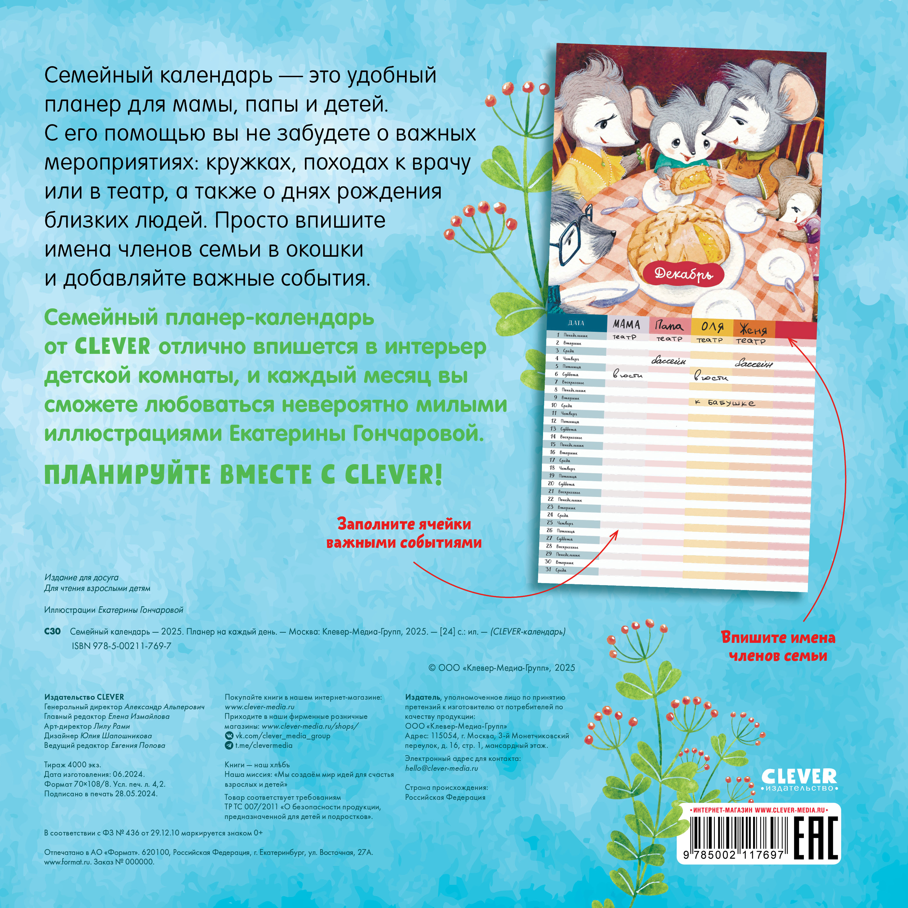 Календарь настенный CLEVER Семейный. Планер на каждый день. 2025 год / 9785002117697