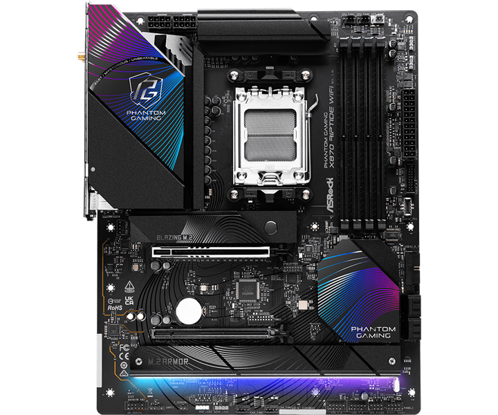 ASROCK X870 RIPTIDE WIFI, AM5, X870, 4*DDR5, 4*SATA, 3*M.2, 4*USB 2.0, 5*USB 3.2, 2*Type-C, 2*PCIx16, 1*M.2 (Key E), HDMI, ATX
