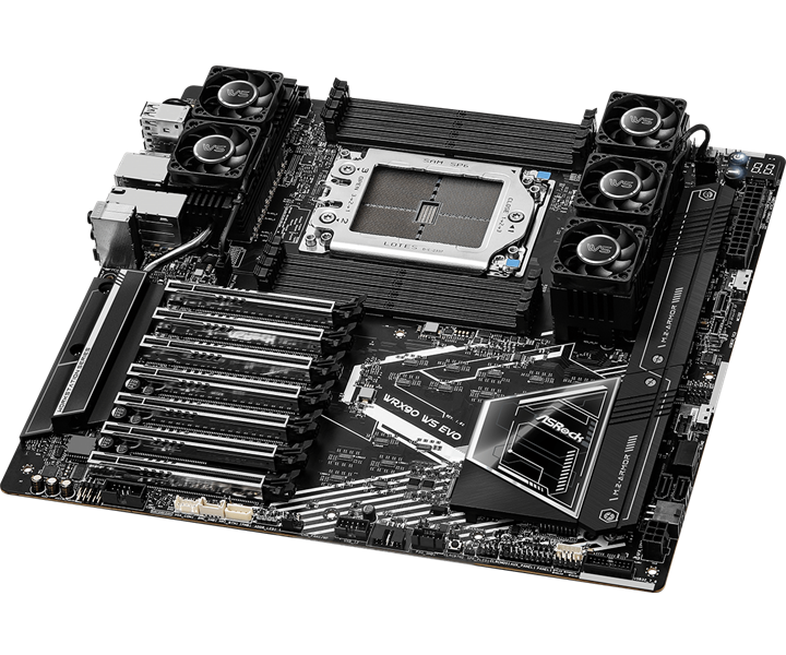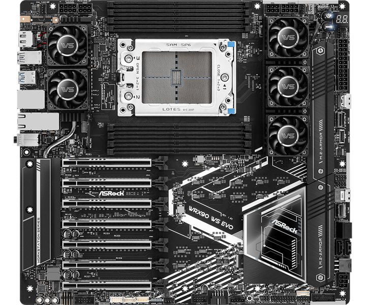 ASROCK WRX90 WS EVO, AMD WRX90, 8*DDR5, 4*SATA, 2*M.2, 2 x SlimSAS, 6*USB 3.2, 2*Type-C, 7*PCIx16, DP, EEB