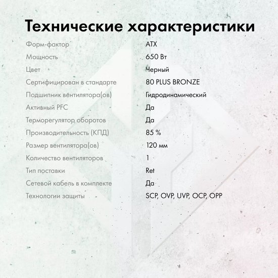❗️Текст описания составлен при помощи искусственного интеллекта.✅ Блок питания GMNG GG-PS650W-V2 — это надежный и мощный источник энергии для вашего игрового ПК. С мощностью 650 Вт он обеспечит стабильную работу всех компонентов, даже при высоких нагрузках.✅ Благодаря активной коррекции фактора мощности (PFC) и высокому КПД в 85%, вы можете быть уверены в эффективности и экономичности этого блока питания. Сертификат 80 PLUS Bronze подтверждает его высокое качество и надежность.✅ Форм-фактор ATX и стандарт ATX12V 2.31 делают GMNG GG-PS650W-V2 совместимым с большинством современных материнских плат. Плоские кабели упрощают прокладку и улучшают вентиляцию внутри корпуса.✅ Система охлаждения представлена одним 120 мм вентилятором с гидродинамическим подшипником, что обеспечивает тихую и эффективную работу. Высота блока питания всего 86 мм, что позволяет легко установить его в компактные корпуса.⚠️ Обратите внимание на количество линий +12V — всего одна, но с максимальным током 54 А, что гарантирует стабильное питание для мощных видеокарт и других компонентов.✅ GMNG GG-PS650W-V2 также предлагает множество разъемов: 6 SATA и 3 PCIe 6+2 pin, что делает его идеальным выбором для сборки мощного игрового компьютера.❗️Текст описания составлен при помощи искусственного интеллекта.✅ Блок питания GMNG GG-PS650W-V2 — это надежный и мощный источник энергии для вашего игрового ПК. С мощностью 650 Вт он обеспечит стабильную работу всех компонентов, даже при высоких нагрузках.✅ Благодаря активной коррекции фактора мощности (PFC) и высокому КПД в 85%, вы можете быть уверены в эффективности и экономичности этого блока питания. Сертификат 80 PLUS Bronze подтверждает его высокое качество и надежность.✅ Форм-фактор ATX и стандарт ATX12V 2.31 делают GMNG GG-PS650W-V2 совместимым с большинством современных материнских плат. Плоские кабели упрощают прокладку и улучшают вентиляцию внутри корпуса.✅ Система охлаждения представлена одним 120 мм вентилятором с гидродинамическим подшипником, что обеспечивает тихую и эффективную работу. Высота блока питания всего 86 мм, что позволяет легко установить его в компактные корпуса.⚠️ Обратите внимание на количество линий +12V — всего одна, но с максимальным током 54 А, что гарантирует стабильное питание для мощных видеокарт и других компонентов.✅ GMNG GG-PS650W-V2 также предлагает множество разъемов: 6 SATA и 3 PCIe 6+2 pin, что делает его идеальным выбором для сборки мощного игрового компьютера.