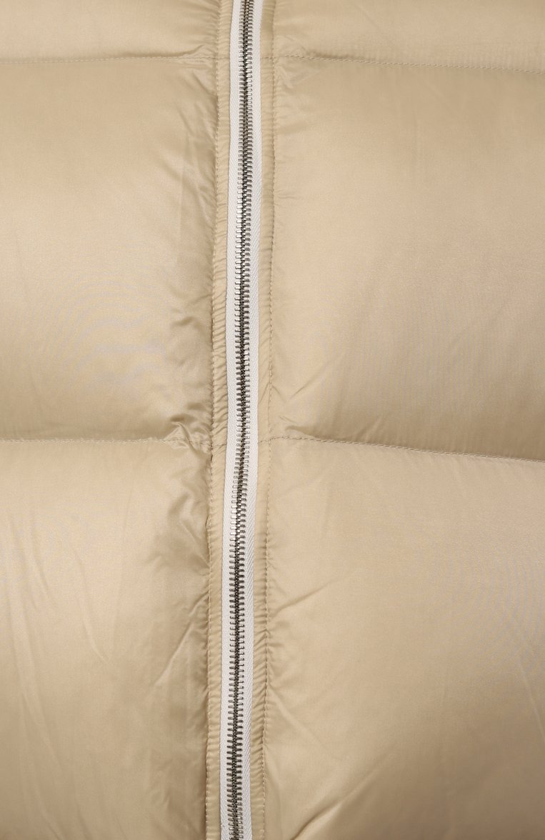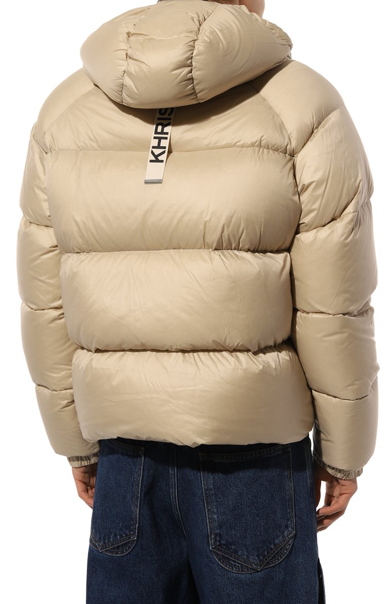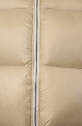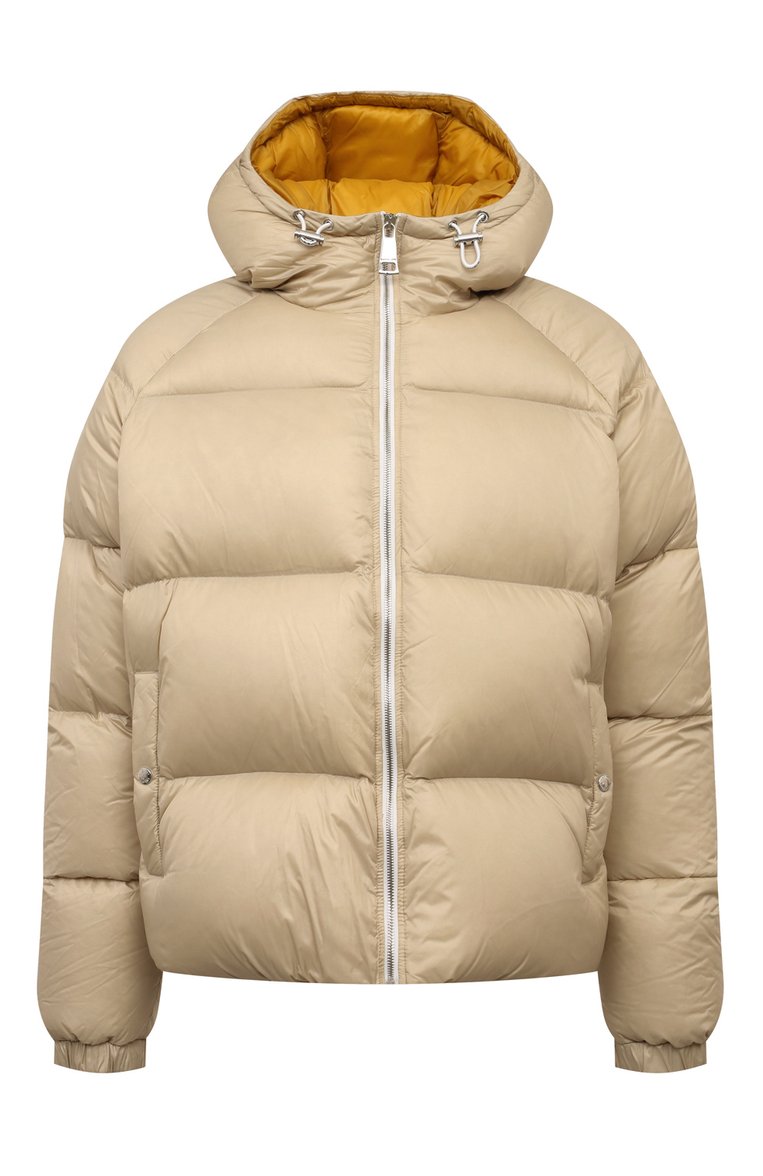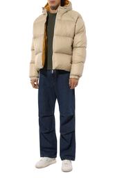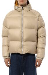 Утепленную утиным пухом куртку с рукавами реглан и боковыми карманами на кнопках выполнили из полиамида. Сама короткая модель с регулируемым капюшоном, а также внутренний карман застегиваются молнией. Сзади — брендированная лента.