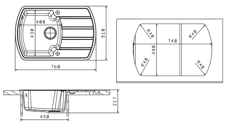 Врезная кухонная мойка Florentina Нире-760 FS 76х51см искусственный гранит бежевый