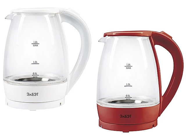 электрочайник со стеклянной термостойкой колбой, на стекле нанесена мерная шкала, дисковый нагревательный элемент, светодиодная подсветка, автоматическое выключение, объем - 1,8 литра, 1850 Ватт