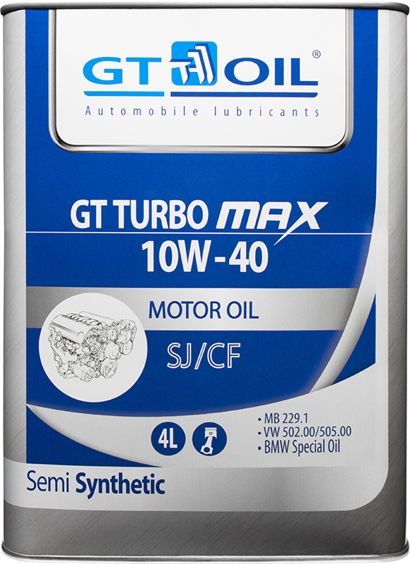Масло моторное полусинтетическое всесезонное GT Turbo Max, SAE 10W-40, API SJ/CF, 4 л