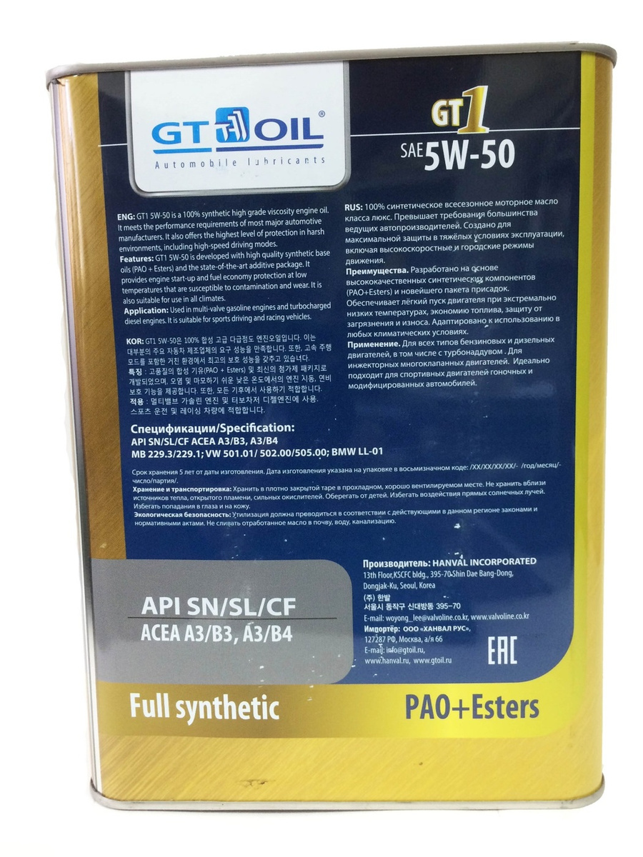 Масло моторное GT1 5W-50 API SM/CF 4 л