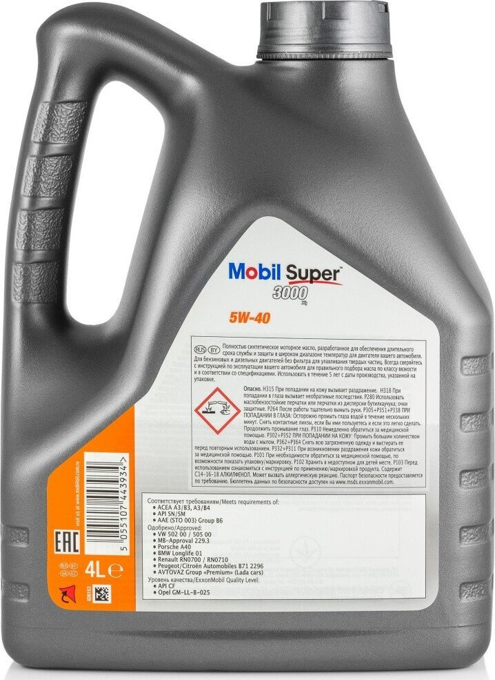 Моторное масло MOBIL Mobil Super 3000 X1, синтетическое, 5W-40, 4 л 150013