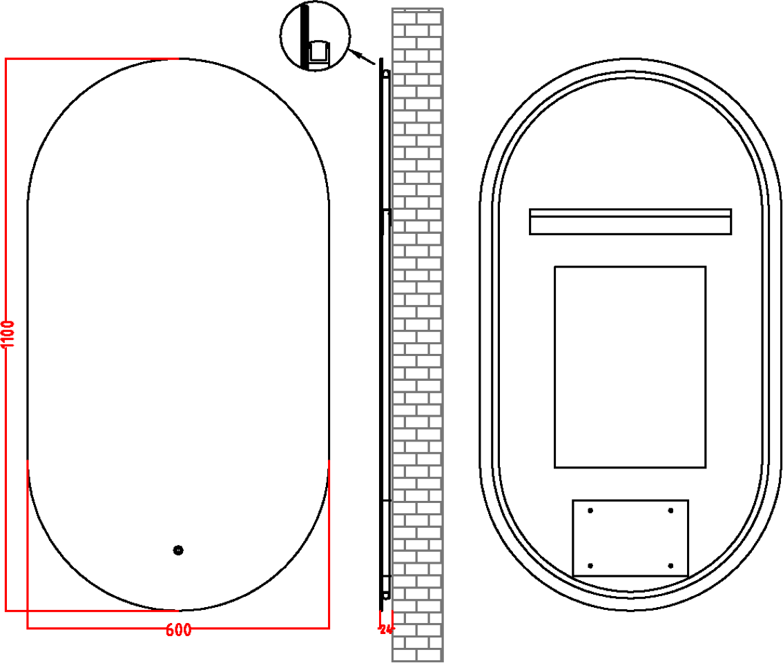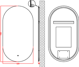 зеркало boheme modern 60x110 с подсветкой, сенсорным выключателем, антизапотеванием, черный