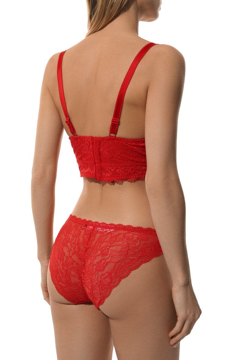 Слипы с узким поясом и фестонами по краям сшили из эластичного нейлонового кружева с цветочным мотивом. Модель из коллекции Rosessence дополнили дышащей хлопковой ластовицей.