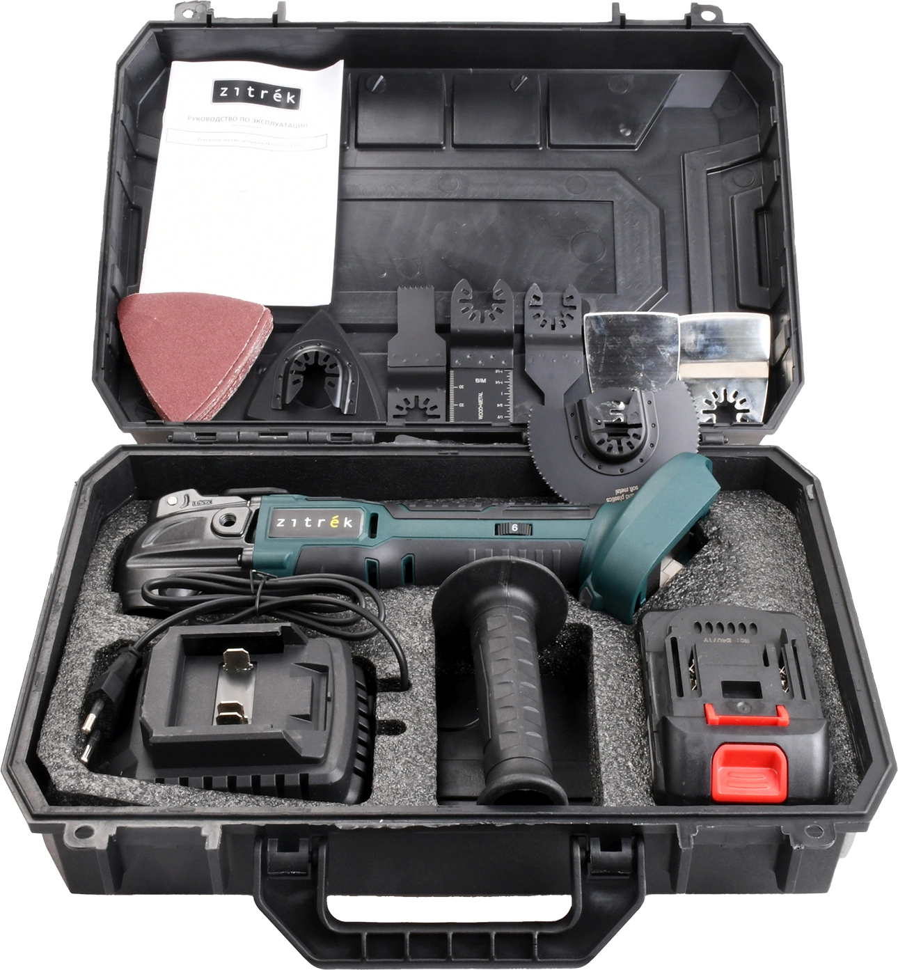 Комплект поставкиРеноватор аккумуляторный, АКБ, зарядное устройство, насадки для реноватора – 9 шт., руководство по эксплуатации, кейс.