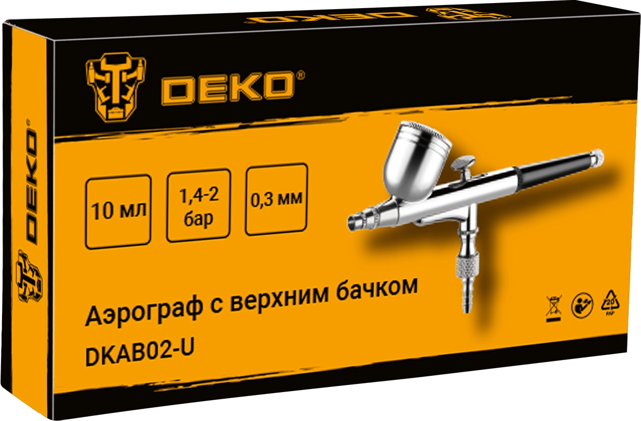 ОписаниеАэрограф с верхним бачком DEKO DKAB02-U предназначен для ведения окрасочных работ на небольших поверхностях, нанесения синтетической и целлюлозной краски, эмали, чернил. Подходит для работы с иллюстрациями, хобби и поделок. Сопло диаметром 0,3 мм обеспечивает точное и тонкое распыление краски.
