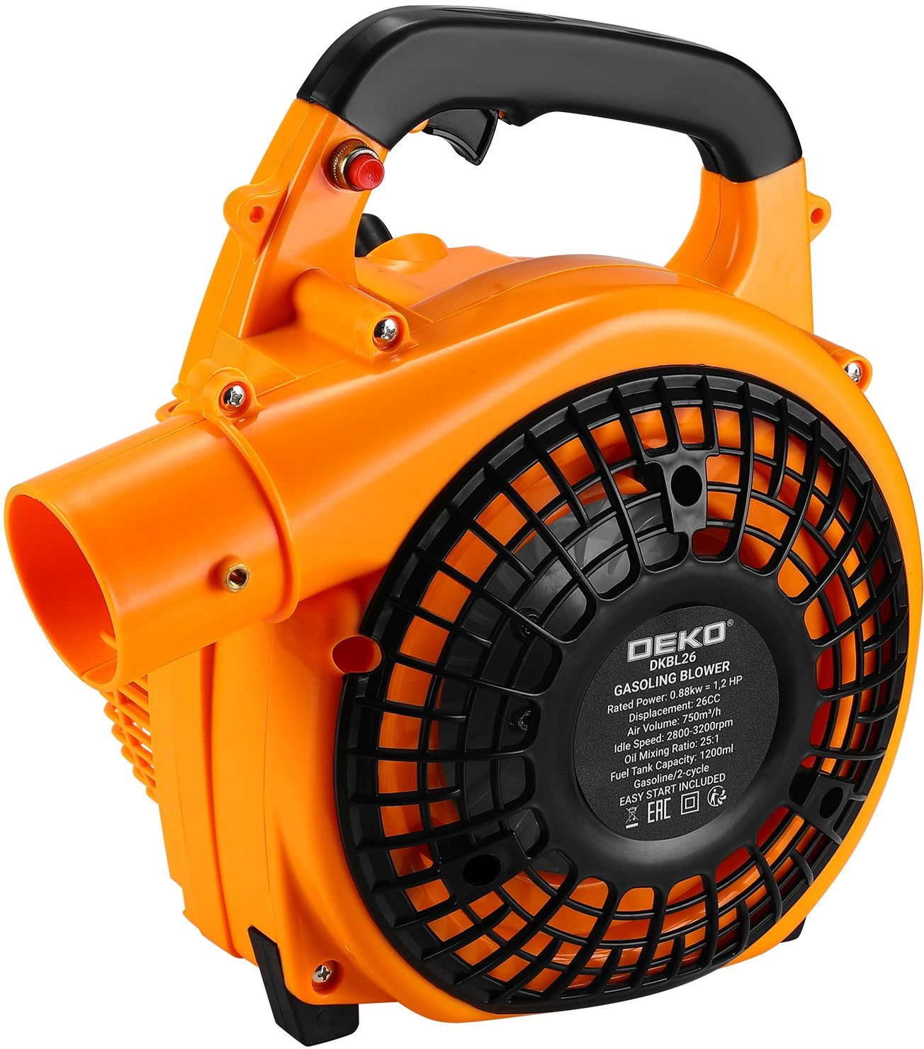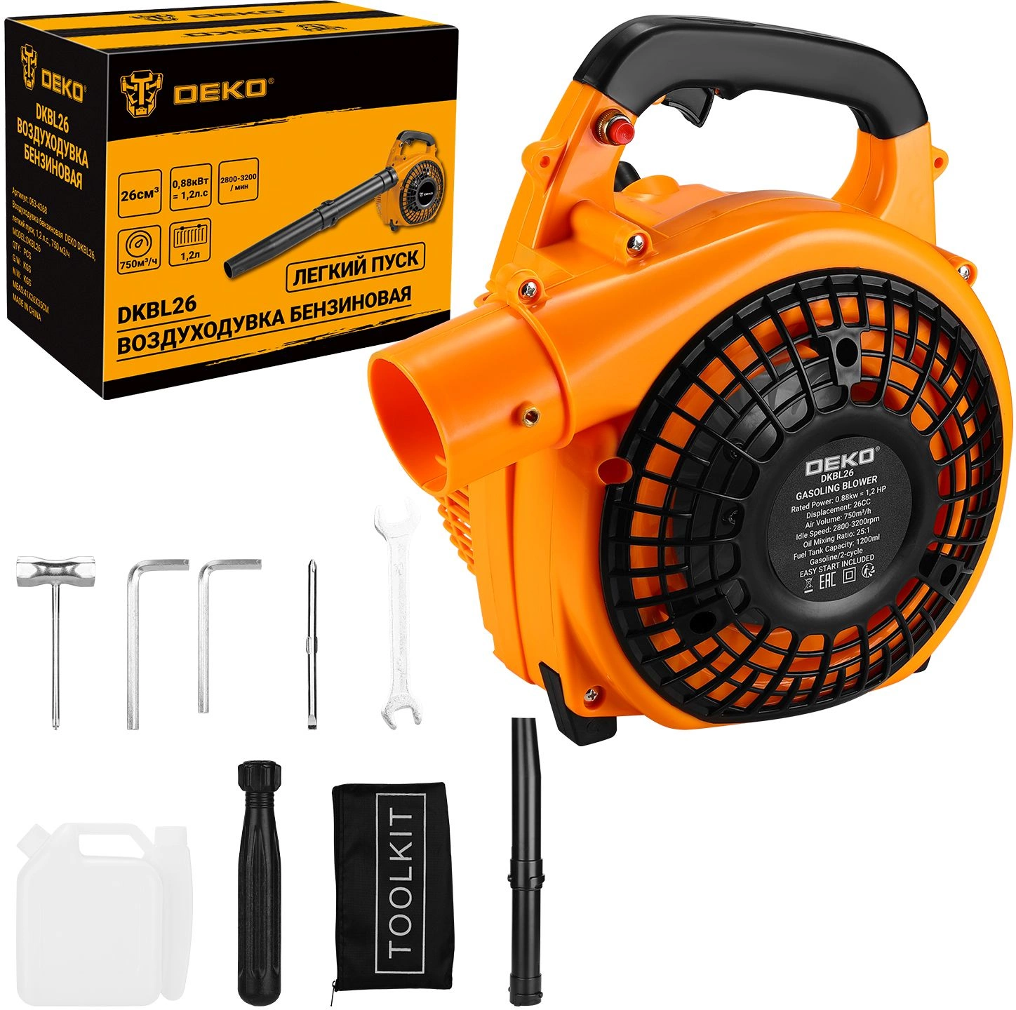 ОписаниеВоздуходувка бензиновая DEKO DKBL26 предназначена для уборки территории, сбора сухих листьев возле дома и в саду. Имеет функцию обдува. Благодаря двухтактному двигателю скорость воздушного потока достигает 80 м/с, что позволяет производить уборку эффективно и быстро. Функция упрощенного запуска.