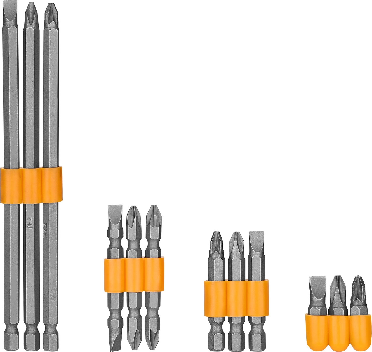 • Описание Набор бит DEKO BS12 включает в себя: 3 шт. длинный наконечник 15 см: PZ2, PH2, plat 6 мм 3 шт. биты 2,5 см: PZ2, PH2, plat 6 мм 3 шт. наконечник 5 см: PZ2, PH2, plat 6 мм 3 шт. двойной наконечник 6,5 см: PZ2, PH2, plat 6 мм