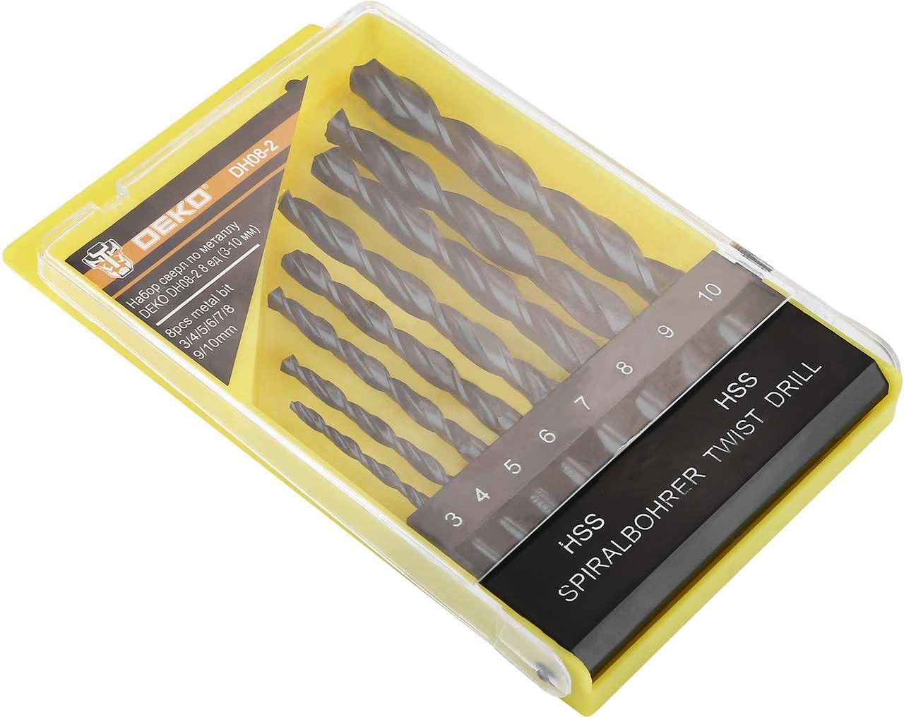 ОписаниеНабор сверл по металлу DEKO DH08-2. В наборе 8 сверл диаметром 3, 4, 5, 6, 7, 8, 9, 10 мм.