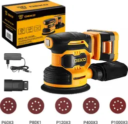 Комплект поставкиШлифмашина, АКБ, зарядное устройство для АКБ, шлифовальные круги - 16 шт., адаптер для подключения пылесоса, мешок-пылесборник, руководство по эксплуатации.