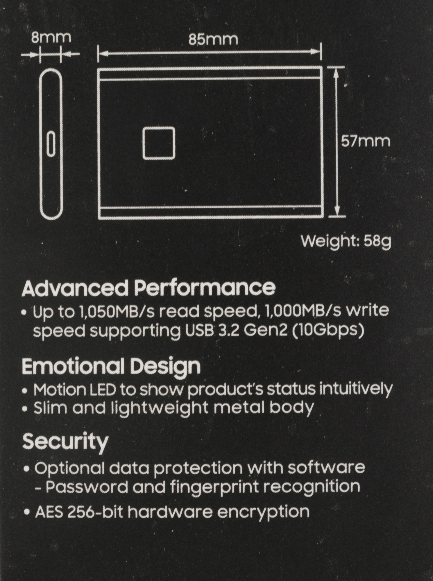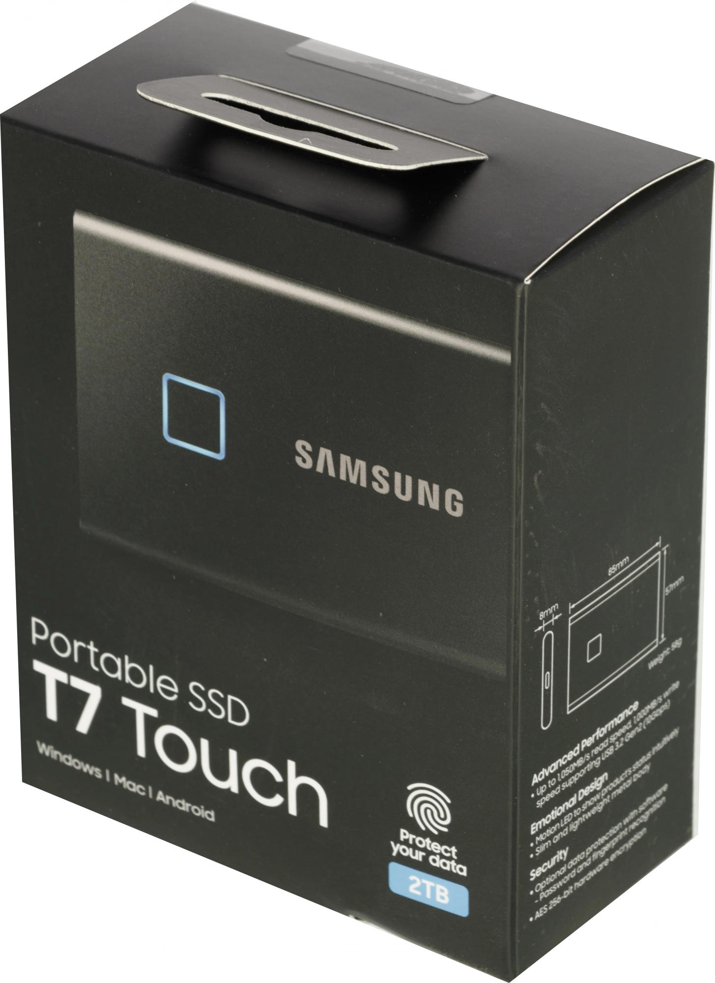• Способ защиты данных аппаратное шифрование (AES-256), сканер отпечатка пальца