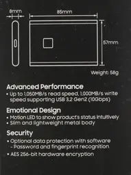 • Особенности Аппаратное AES 256-битное шифрование