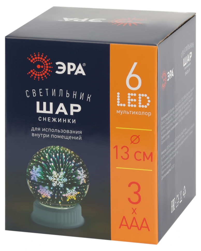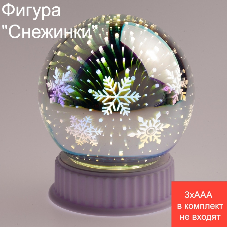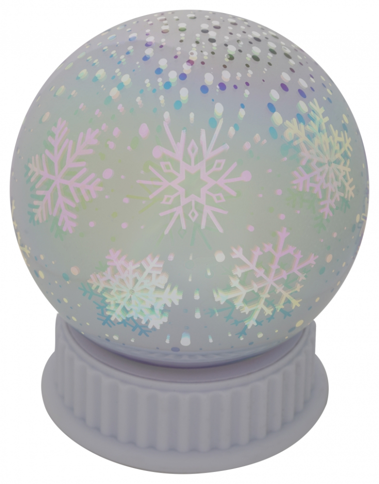 Новогодний светодиодный шар Снежинки ENGDS-15 диаметром 13 см создает уютную атмосферу в доме к Новому году и Рождеству! Шар выполнен из ПВХ и имеет внутреннюю проекцию снежинок, которая в сочетании с холодной белой подсветкой создает ощущение глубины, ее интересно рассматривать. Этот небольшой настольный светильник станет украшением кухни, гостиной или спальни. Декоративный светильник работает от 3 батареек AAA и имеет класс защиты IP20 (использовать только в помещениях). Такой необычный декор для дома подарит Вам ощущение праздника!