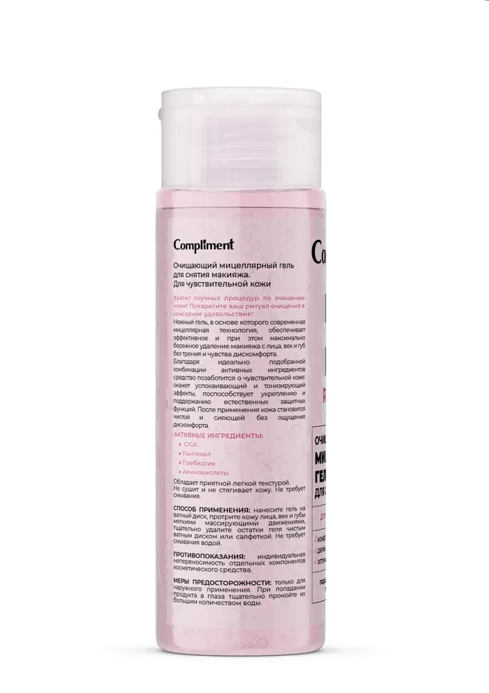 - Активные ингредиенты пантенол, пребиотик, аминокислоты, экстракт центеллы азиатской, мицеллы