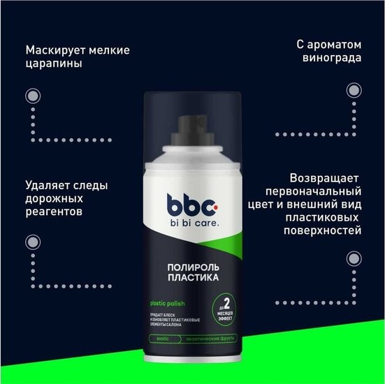 ✅ Эффективное средство для полировки пластиковых элементов интерьера автомобиля. Оно создает прочное полимерное защитное покрытие, скрывающее мелкие царапины и придающее пластику глянцевый блеск.✅ Защищает материалы от старения и выцветания, восстанавливая первоначальный цвет и внешний вид пластиковых поверхностей. Обладает антистатическим эффектом, который предотвращает оседание пыли.⚠️ Перед использованием обязательно тщательно встряхните баллон! ✅ Подготовьте поверхность: очистите от сильных загрязнений и высушите. Обильно распылите средство на поверхность и аккуратно располируйте с помощью мягкой безворсовой ткани. Для достижения наилучшего результата используйте при температуре баллона выше +14°С.✅ Эффективное средство для полировки пластиковых элементов интерьера автомобиля. Оно создает прочное полимерное защитное покрытие, скрывающее мелкие царапины и придающее пластику глянцевый блеск.✅ Защищает материалы от старения и выцветания, восстанавливая первоначальный цвет и внешний вид пластиковых поверхностей. Обладает антистатическим эффектом, который предотвращает оседание пыли.⚠️ Перед использованием обязательно тщательно встряхните баллон! ✅ Подготовьте поверхность: очистите от сильных загрязнений и высушите. Обильно распылите средство на поверхность и аккуратно располируйте с помощью мягкой безворсовой ткани. Для достижения наилучшего результата используйте при температуре баллона выше +14°С.
