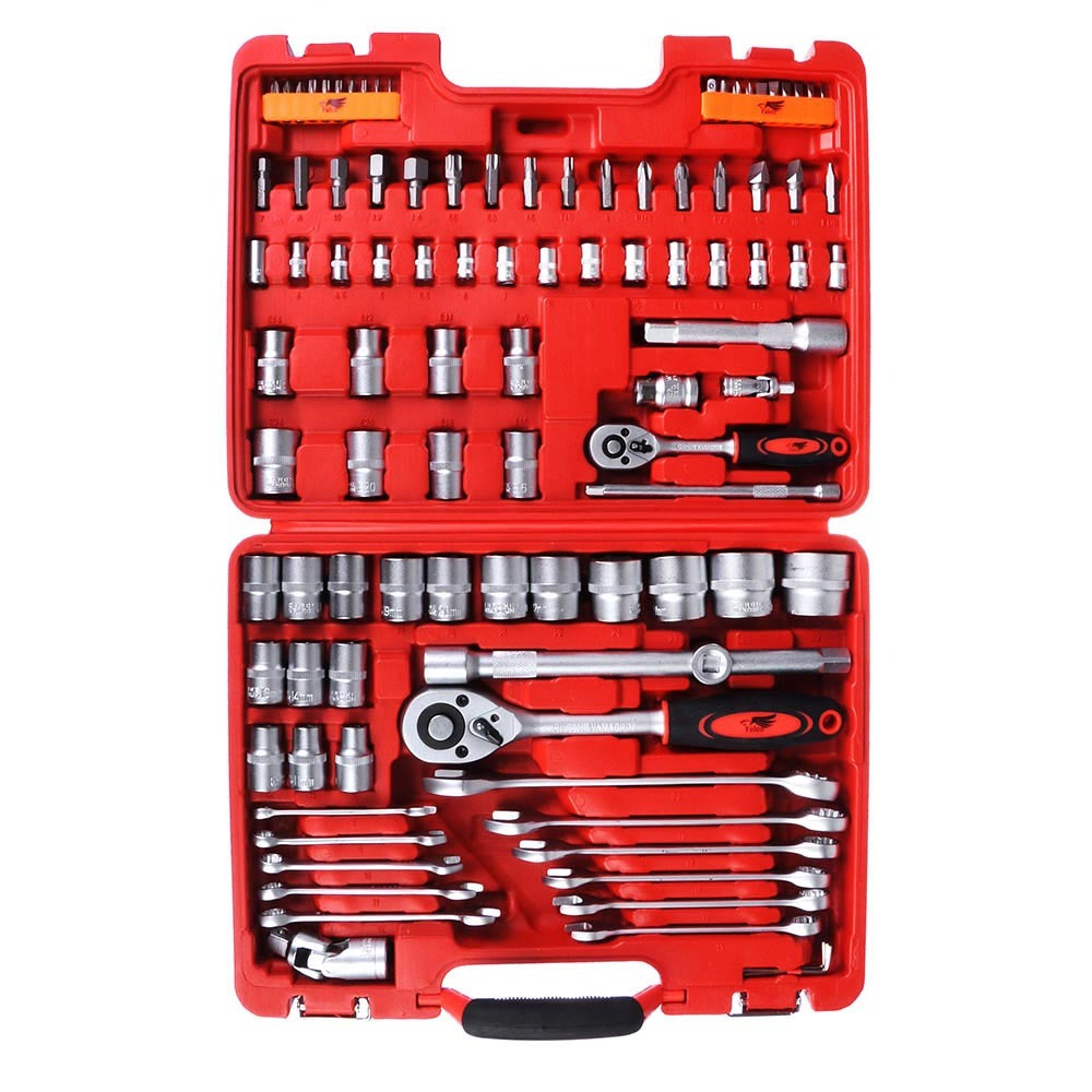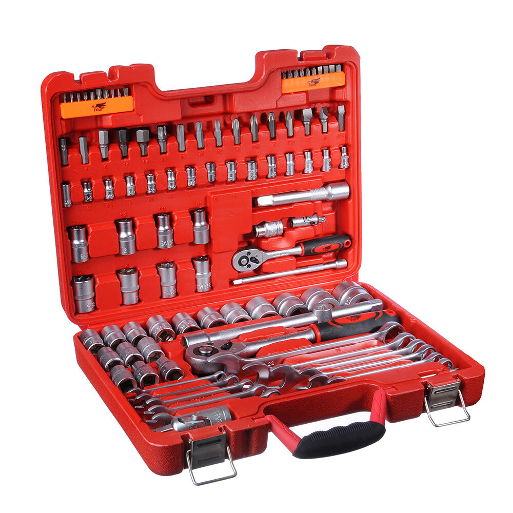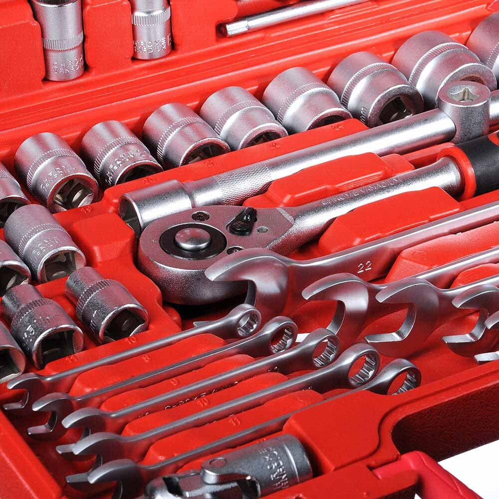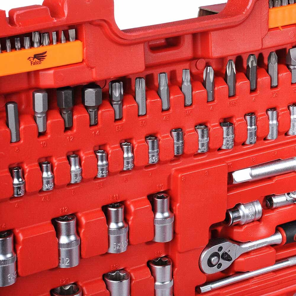 • Комплектация: Головки 1/2" 6-гранные 17 штук: 10; 11; 12; 13; 14; 15; 16; 17; 18; 19; 20; 21; 22; 24; 27; 30; 32мм Головки TORX 1/2" 8шт: E10; Е11; Е12; Е14; Е16; Е18; Е20; Е24 Шарнир карданный 1/2" Ключ трещоточный с быстрым сбросом 1/2" Удлинители 1/2" 2шт: 125мм; 250мм Головки торцевые 1/4" 9шт: 4; 4.5; 5; 5.5; 6; 7; 8; 9; 10мм Головки TORX 1/4" 5шт: E4; Е5; Е6; Е7; Е8 Шарнир карданный 1/4" Удлинитель 1/4" 150мм Ключ трещоточный с быстрым сбросом 1/4" Биты 5/16" 16шт: Шестигранные (HEX):7; 8; 10; 12; 14мм Шлицевые (SLOTTED): 8; 10; 12мм С внешней звездой (TORX): 40; 45; 50; 55мм PHILLIPS: 3; 4мм POZIDRIV: 3; 4мм Биты 1/4" 19шт: Шлицевые (SLOTTED): 3; 4; 5; 5.5; 6; 7мм С внешней звездой (TORX): Т8; Т10; Т15; Т20; Т25; Т27; Т30мм PHILLIPS: 1; 2; 3 POZIDRIV: 1; 2; 3 Переходник 1/2"- 3/8" Битодержатель 1/2" Битодержатель 1/4" Ключи комбинированные 11шт: 8х8; 9х9; 10х10; 11х11; 12х12; 13х13; 14х14; 15х15; 17х17; 19х19; 22х22 Ключи шестигранные L-образные 3шт: 1.5; 2; 2.5мм.