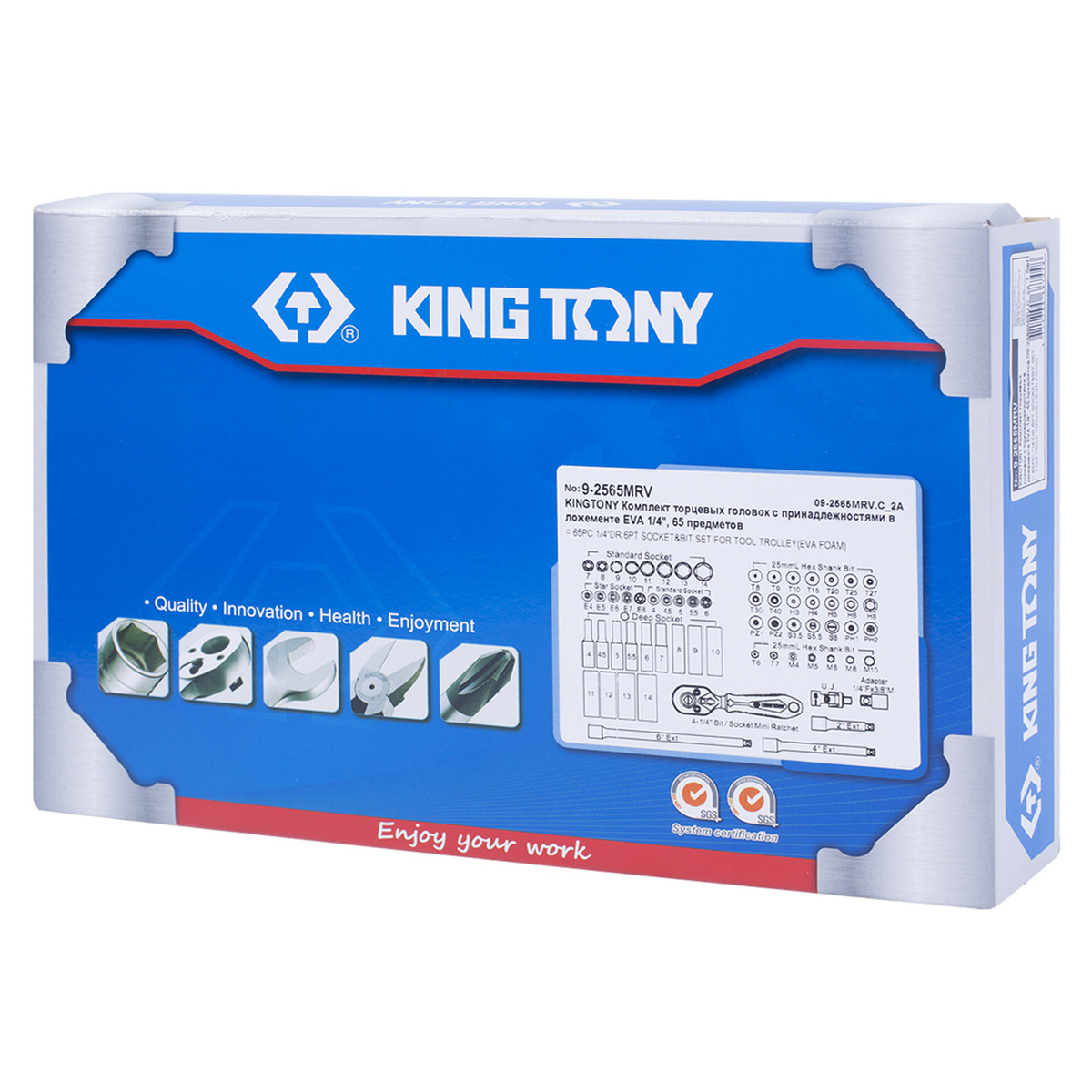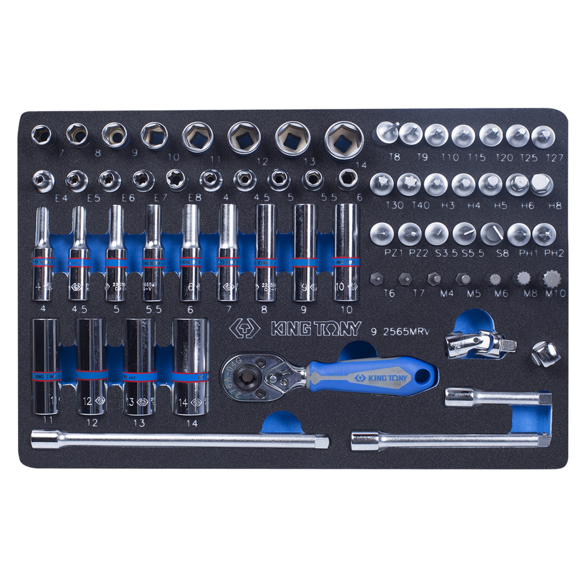 Набор торцевых головок 1/4" с принадлежностями, ложемент, 65 предметов KING TONY 9-2565MRV