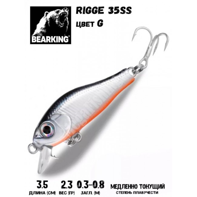 Рыболовные приманки Bearking Rigge 35S (реплика на ZipBaits Rigge 35S) – искуственные приманки (приманки для рыбалки, приманки для рыбы, приманки на окуня, приманки на хищника, приманки на щуку). Тип плавучести приманка для рыбы имеет медленно тонущий. За счет всех своих особенностей Ридж 35 отлично твичится. При этом прекрасно работает и на равномерной проводке. Приманка для рыбалки позволяет также ловить белых хищников сплавом и на "шлепок". Из-за своих крохотных размеров, приманка порой выуживает не только хищников, но и некоторые виды полу хищных или мирных рыб.