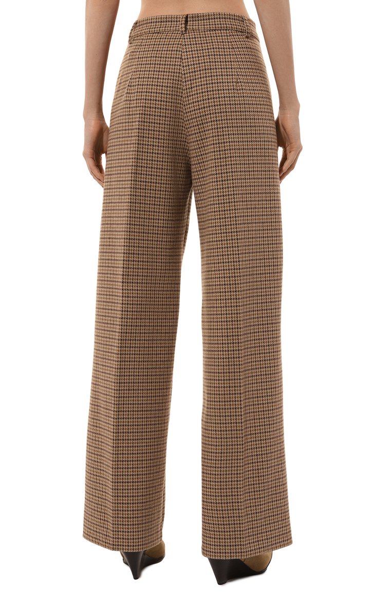 Для пошива брюк Panetto с жаккардовым узором «пье-де-пуль» использовали слегка эластичную фланель на основе полиэстера с добавлением хлопка. Модель из линии Weekend дополнили боковыми карманами и застежкой на молнию и пуговицу.