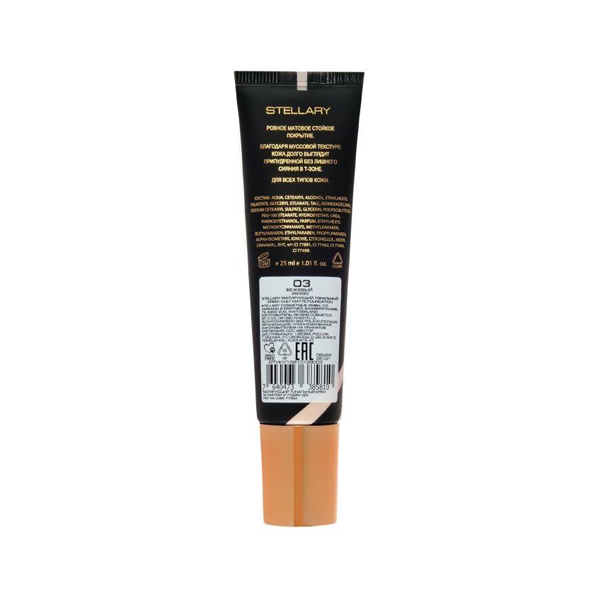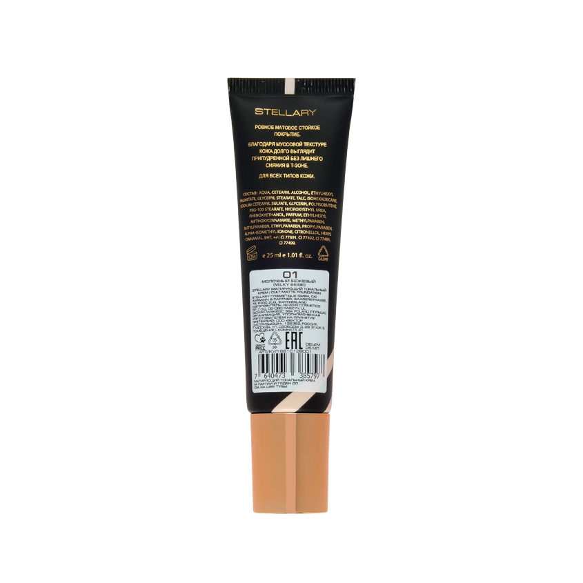 Крем тональный для лица `STELLARY` CULT MATTE матирующий тон 01 Milky beige