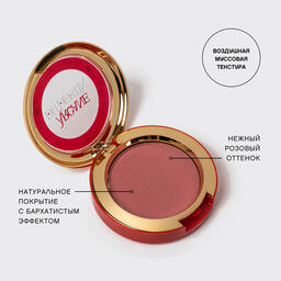 Удовольствие от нанесения румян обеспечит воздушная муссовая текстура, а удовольствие от результата — легкое натуральное покрытие с бархатистым эффектом.