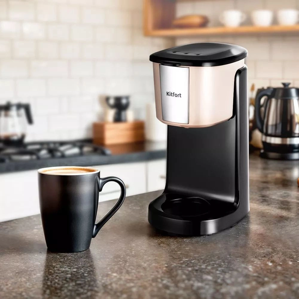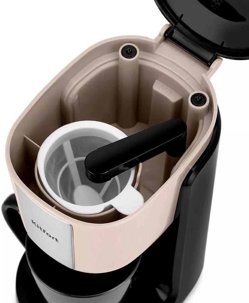 ОписаниеКапельная кофеварка Кіtfort КТ-7402 поможет приготовить ароматный кофе из молотого кофе. Она компактная, простая в использовании и идеально подойдёт для приготовления кофе в домашних условиях.