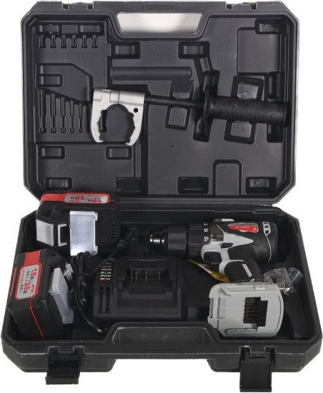 • Комплектация - Дрель-шуруповерт - 1 шт.- Аккумулятор 2 Ач - 2 шт.- Зарядное устройство - 1 шт.- Дополнительная рукоятка - 1 шт.- Кейс - 1 шт.