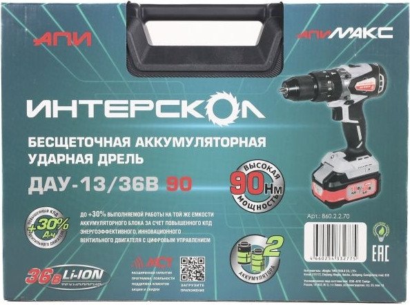 • Комплектация - Дрель-шуруповерт - 1 шт.- Аккумулятор 2 Ач - 2 шт.- Зарядное устройство - 1 шт.- Дополнительная рукоятка - 1 шт.- Кейс - 1 шт.