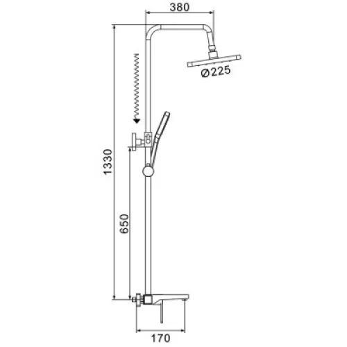 - Состав комплекта с душевой лейкой, с шлангом для душа, верхний душ, душевая стойка, смеситель