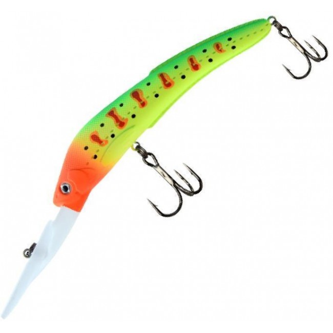 Воблер Som - это не просто приманка, способная работать на глубине до 8 м, это часть концепции бренда LureMax по созданию линейки приманок, которые способны решить поставленные рыболовами задачи, например, работа в сложных условиях, когда есть течение, или в холодный период, когда меняется вязкость воды. Воблер Som безупречно справляется со своей работой в этих непростых условиях. Надо понимать, что заглубление, игра и привлекательность для хищника - это совокупность характеристик успешности приманки. Инженерам бренда LureMax удалось все это совместить в воблере Som. Приманка оптимальна для ловли щуки, судака и сома. Плавник в хвостовой части позволяет приманке создавать мощные гидроакустические колебания, привлекающие рыбу с большого расстояния. Воблер сохраняет стабильную игру даже на сильном течении. Вся цветовая гамма LureMax разрабатывалась при непосредственном участии российских ихтиологов специально для местных видов рыб. Приманки светятся в ультрафиолете, что повышает их заметность для хищника в условиях низкой освещенности. Широкая цветовая гамма пищевых и раздражающих расцветок делает возможным использовать Som при любой степени освещенности и мутности воды. Приманка оснащена крючками Saikyo (Япония). Рабочий горизонт этой модели до 8 м. Рекомендуемая скорость проводки от 2,4 до 4,5 км/ч.