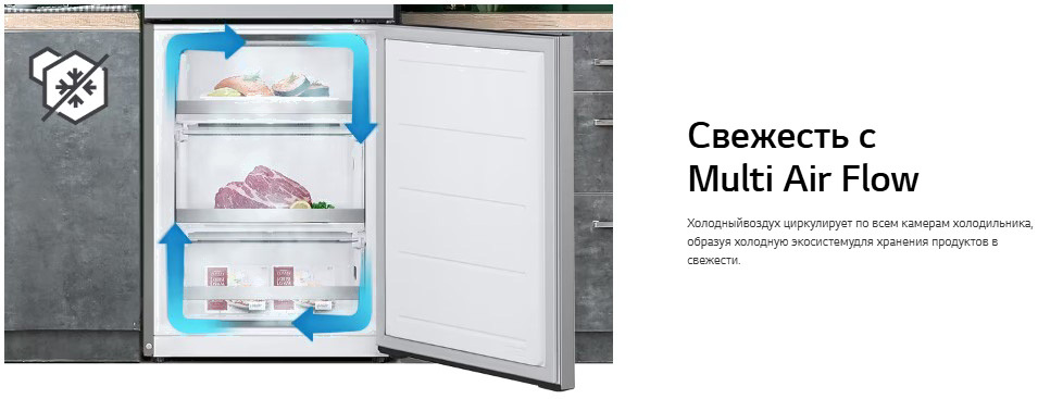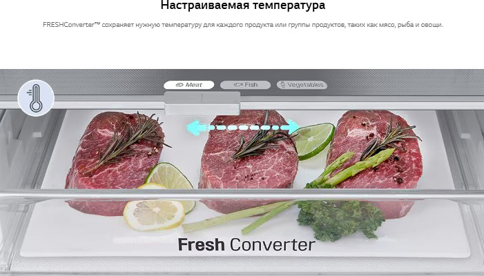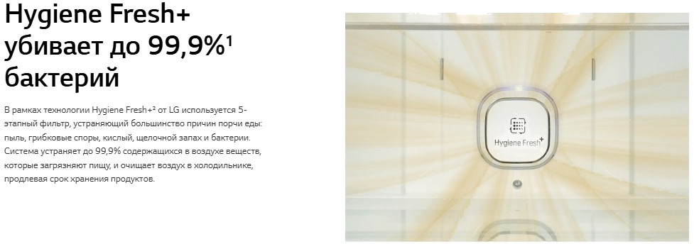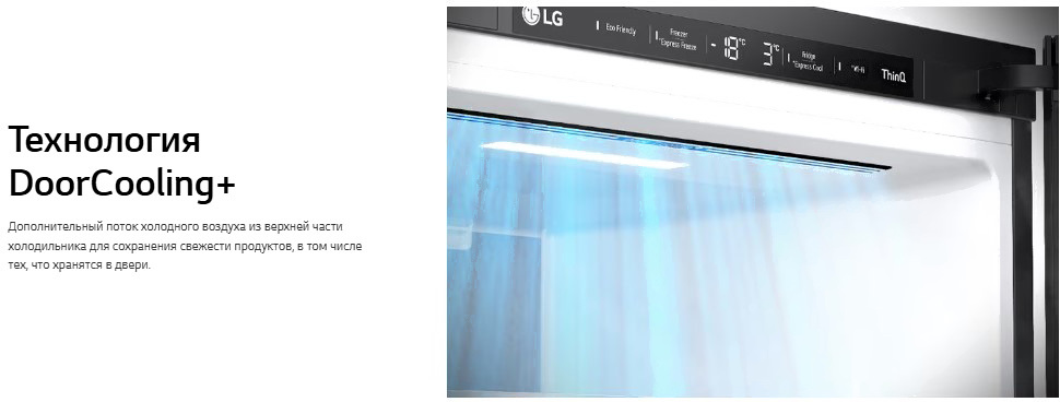 • Технологии DoorCooling+ (LG), Linear Cooling (LG), ThinQ (LG), Hygiene FRESH (LG), FreshBalancer (LG), FreshConverter (LG), Multi Air Flow (LG)