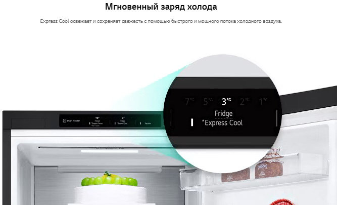 • Индикация температуры, режима «Отпуск», блокировки от детей, быстрого охлаждения, быстрой заморозки, подключения Wi-Fi