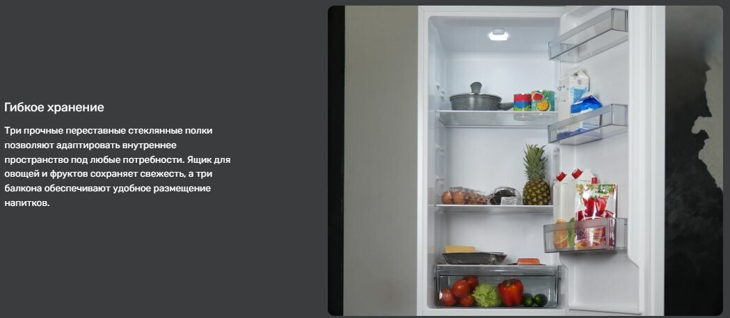 • В комплекте лоток для яиц, ящик для овощей и фруктов