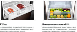 • Индикация температуры, блокировки от детей, режима «Отпуск», быстрой заморозки, подключения Wi-Fi, быстрого охлаждения