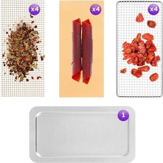 • Комплектация 4 поддона из нержавеющей стали, 4 сетки и 4 поддона для пастилы