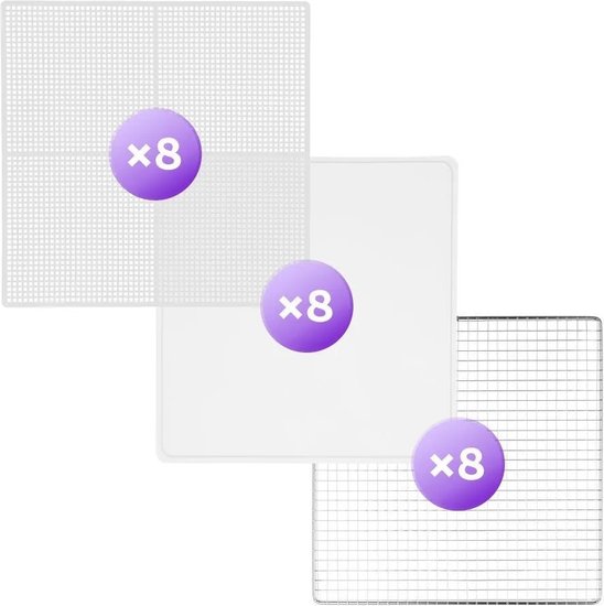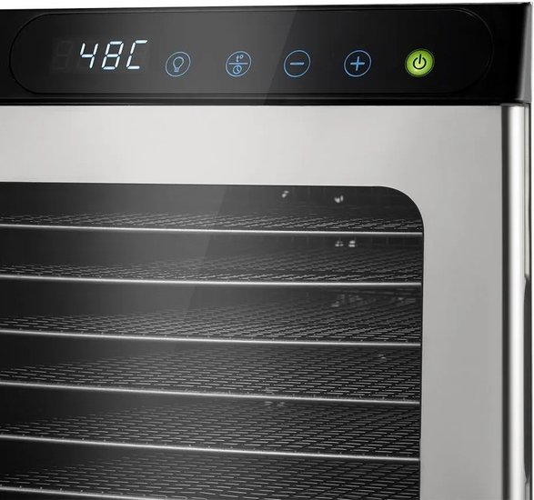 Комплектация8 сеток – для небольших продуктов, таких как травы и ягоды, а также 8 пластиковых сплошных поддонов – для сушки водянистых фруктов и овощей