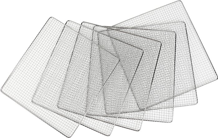 • Комплектация Поддон сетчатый металлический (6 шт), Поддон для пастилы (3 шт), Силиконовый сетчатый коврик (2 шт), Поддон для крошек