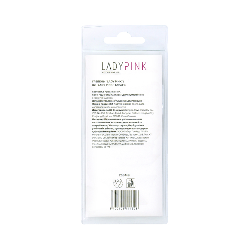 Гребень `LADY PINK` Способ применения: По назначению Состав: ПВХ