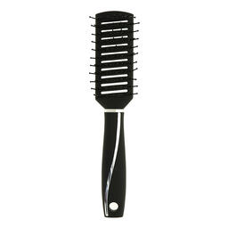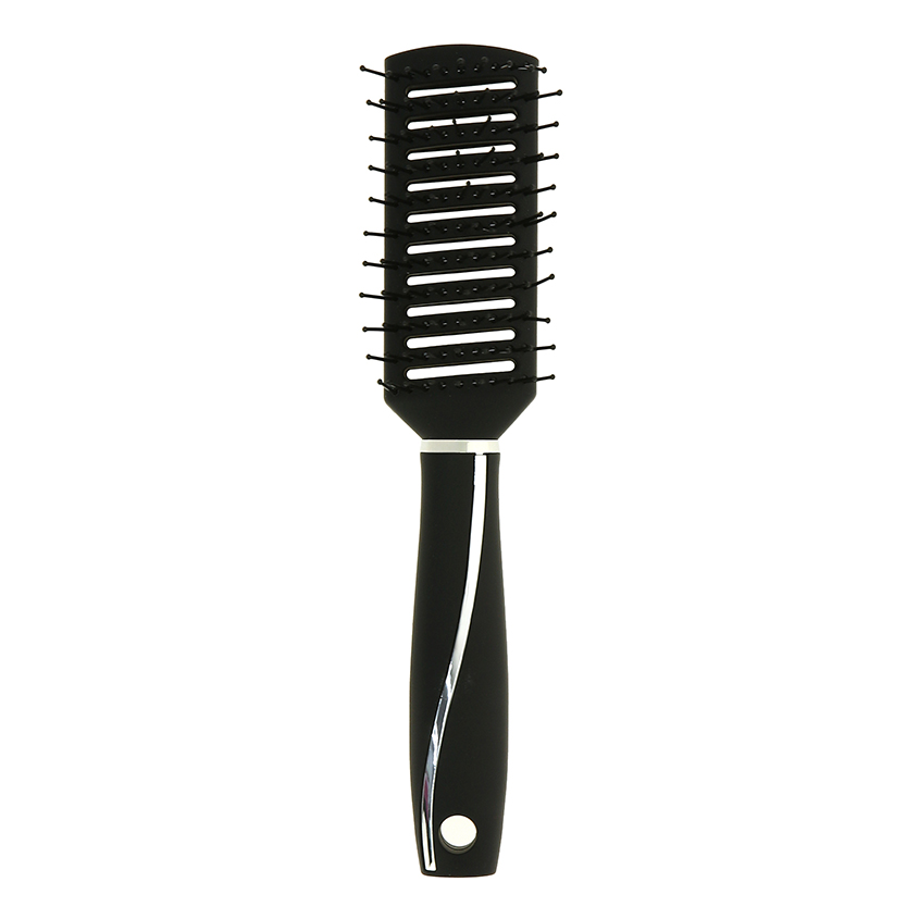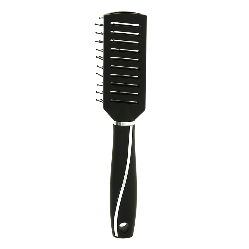 Массажная продувная расческа для волос LADY PINK черного цвета аккуратно распутывает волосы, не повреждая их. Мягкие зубчики бережно массируют кожу головы, стимулируя кровообращение и ускоряя рост волос. Особенная форма расчески для сушки волос позволяет воздуху свободно циркулировать, ускоряя процесс укладки феном.