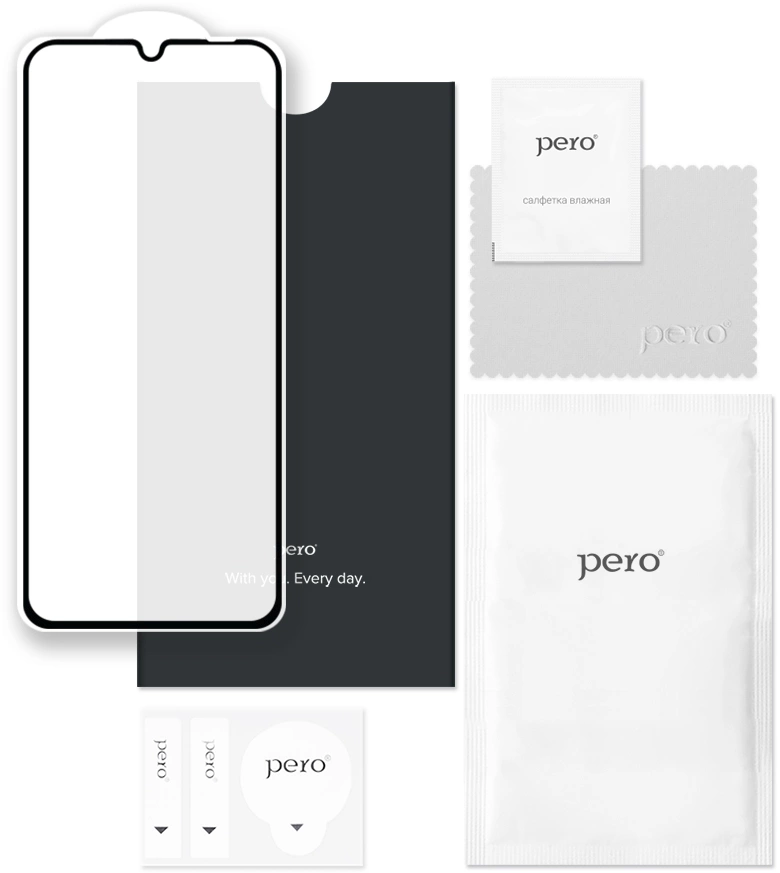 ОписаниеЗащитное стекло PERO FULL COVER & FULL GLUE GLASS имеет прокрашенную тонкую рамку по периметру. Комплектация: защитное стекло, влажная и сухая салфетка, стикеры для удаления пыли.