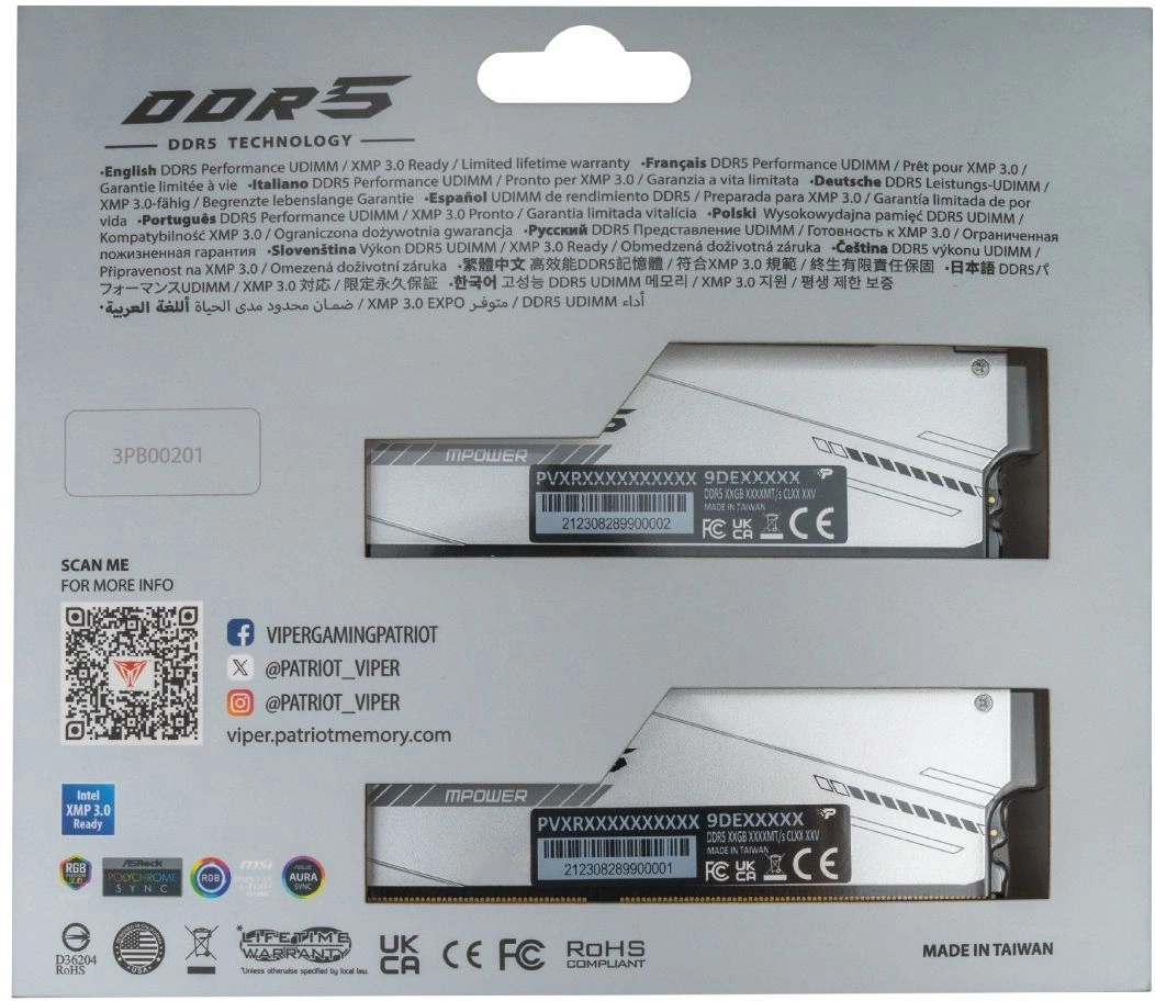 Память DDR5 2x16GB 8000MHz Patriot PVXR532G80C38KM Viper Xtreme 5 RGB RTL Gaming PC5-64000 CL38 DIMM 288-pin 1.45В с радиатором Ret