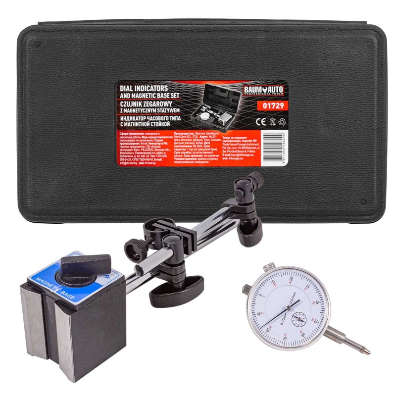 BM-01729 Индикатор часового типа с магнитной стойкой (0-10мм, погрешность-0,01мм), в пласт.кейсе